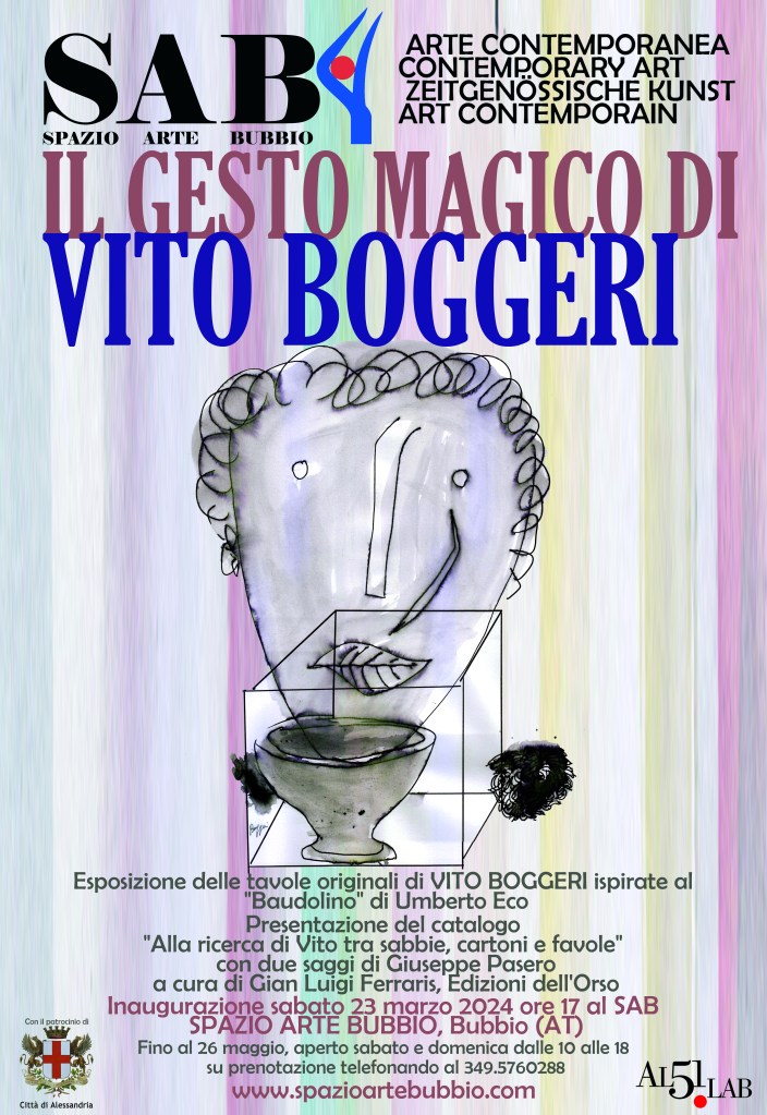 Sabato 23 marzo 2024 alle ore 17:00 inaugura l’esposizione delle tavole originali dell’artista Vito Boggeri ispirate al libro di Umberto Eco Baudolino