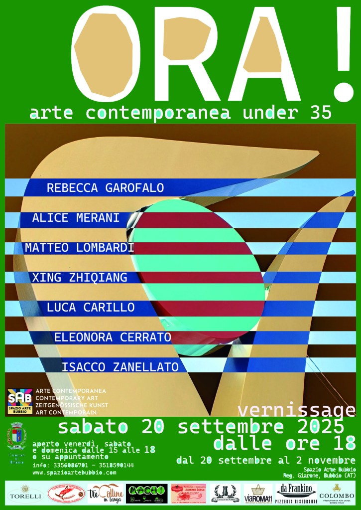 Sabato 20 settembre inaugura alla ore 18:00 presso lo Spazio Arte Bubbio la mostra collettiva di arte contemporanea dal titolo ORA!, dedicata ad artisti al di sotto dei 35 anni.