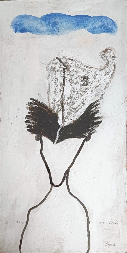 Vito Boggeri, La casa in testa, 2010, acrilico e sabbia su masonite, 45x90cm., SAB003