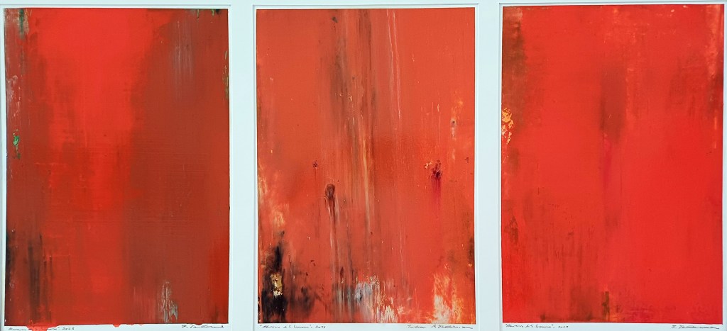 Federico Palerma, Martirio di S. Simone, 2023, olio su carta, 29×42 cm. cad. trittico, SAB002