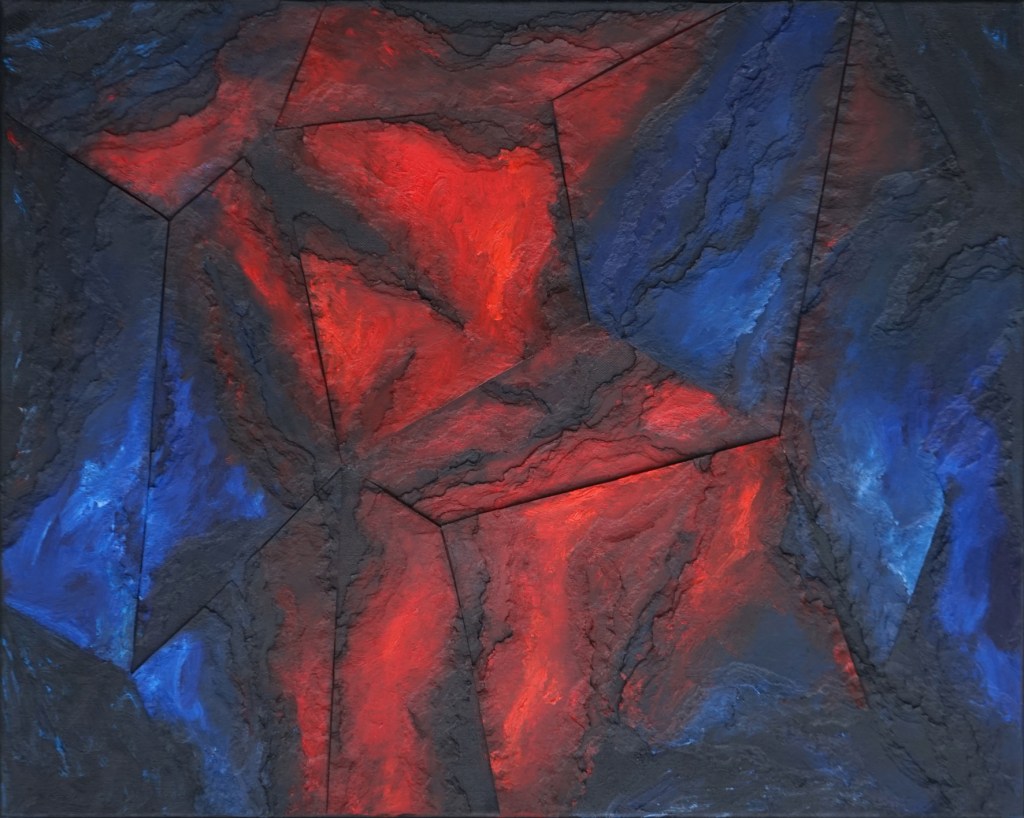Beppe Schiavetta, Corpora et inane, 2023., olio su cartone e tela, 80×100 cm., SAB005